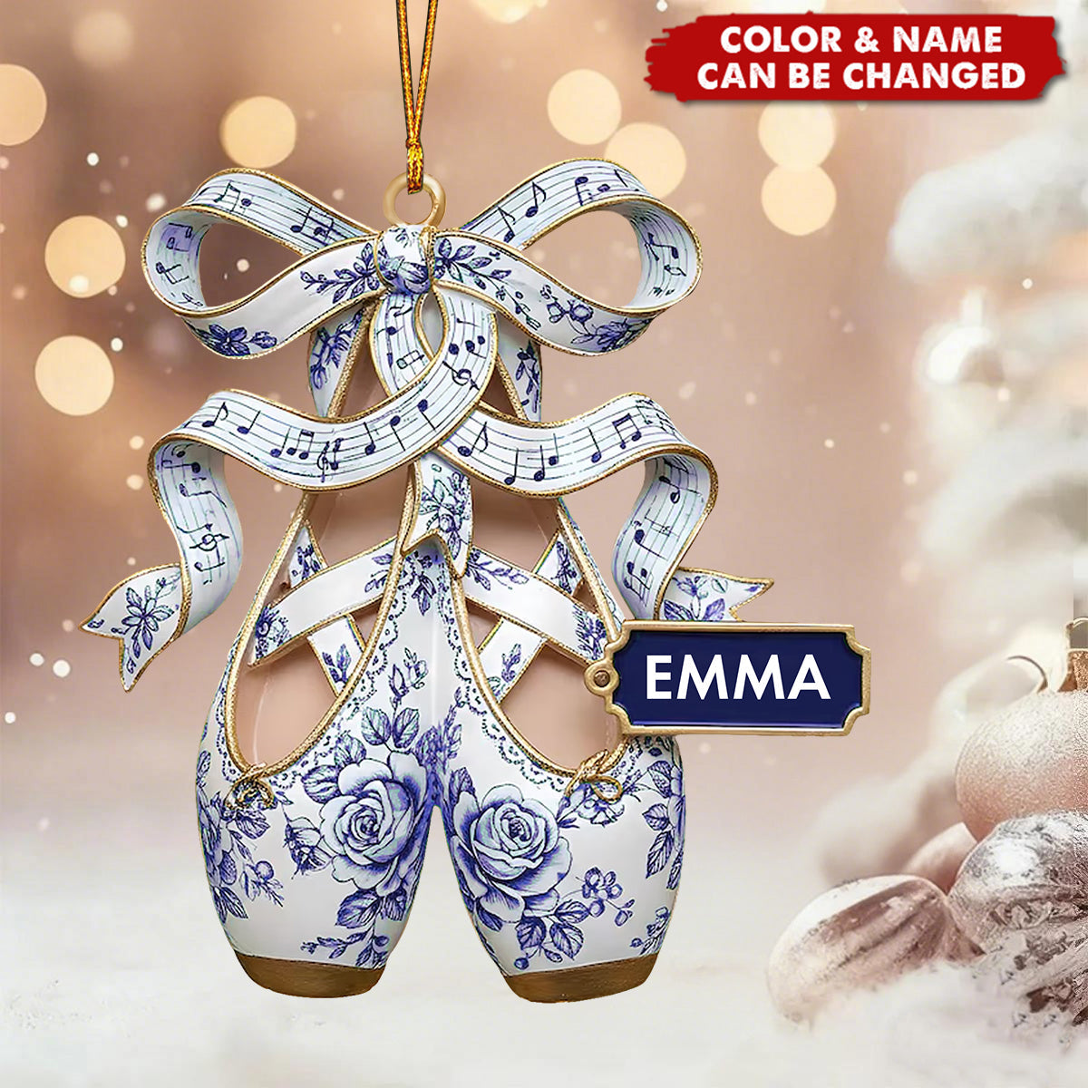 Toile De Jouy Ornaments, Personalized Ballet Shoes Ornament, Christmas Gift for Dancer, Ballerina, Ballet Teacher